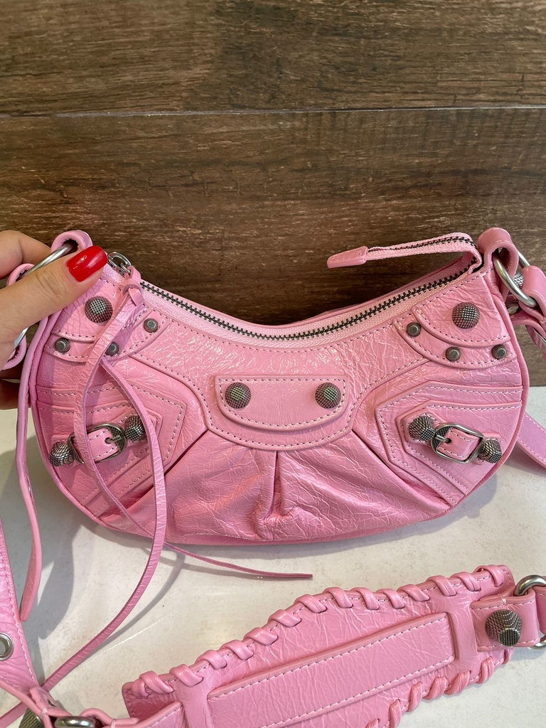 Bolsa Balenciaga Le Cagole XS, em couro legítimo Rosa - Linha Italiana