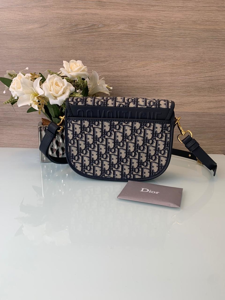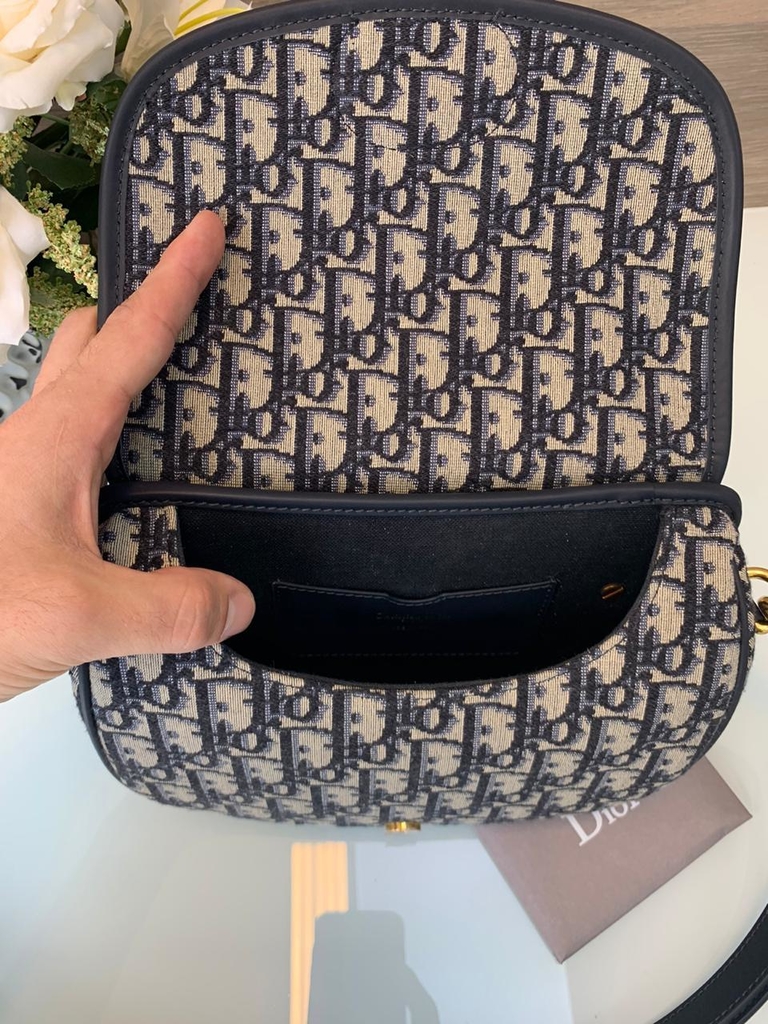 A bolsa Dior Bobby é um modelo com linhas refinadas e proporções harmoniosas. Este modelo médio é confeccionado em canvas jacquard Dior Oblique azul e é realçado por peças de metal com acabamento dourado envelhecido. Sua alça de ombro removível e ajustável exibe uma fivela em estilo militar e permite carregá-la no ombro, transpassada ou na mão.