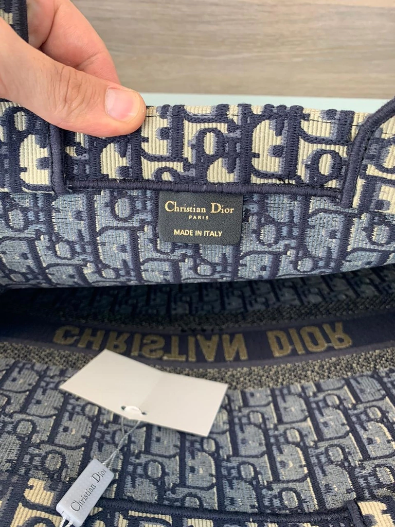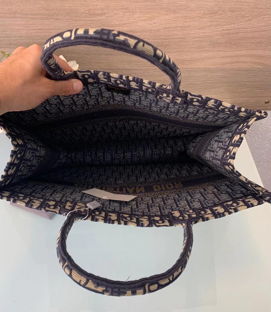 A bolsa Dior Book Tote se tornou uma peça indispensável da estética Dior. Concebida para carregar os itens essenciais do dia a dia, essa bolsa de grande formato em tecido canvas e bordado assinatura “Christian Dior” na parte da frente. Junto aos demais acessórios da linha oblique essa bolsa é o exemplo perfeito da marca Dior. Pode ser usada na mão ou no ombro. Dimensões: 41,5 x 35 x 18 cm Acompanha: Saquinho protetor Dior , Cartão de autenticidade e número de série. Fabricado na Itália