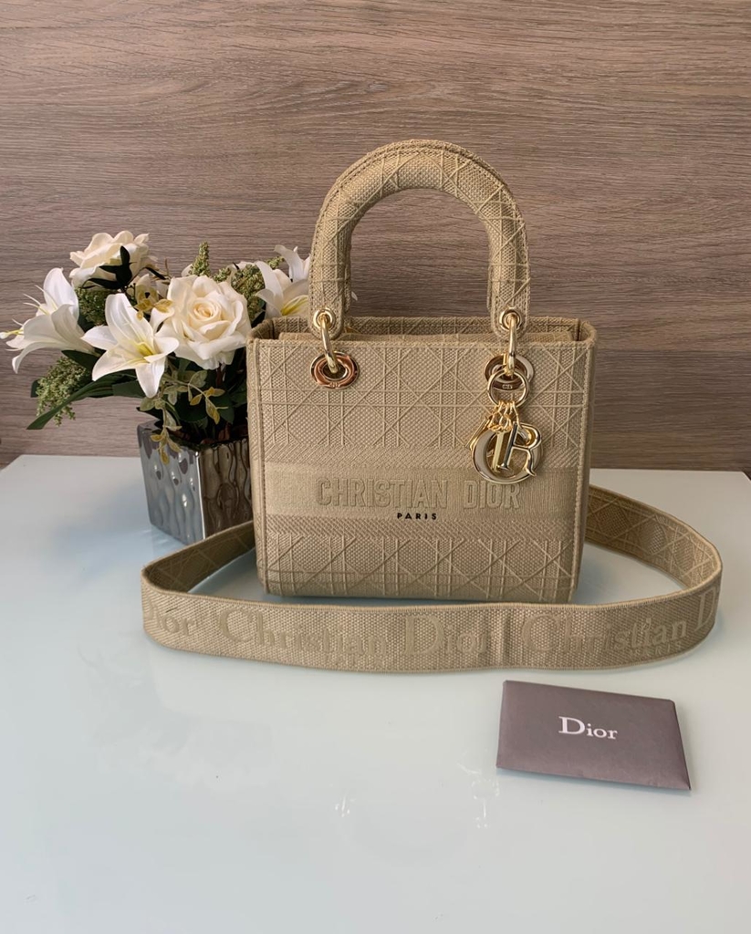 A bolsa Lady D-Lite simboliza perfeitamente a concepção de elegância e beleza da Maison Dior. Refinada e feminina, trata-se de uma criação atemporal, mas sempre atual. Bordada com o motivo Cannage bege e com a assinatura “Christian Dior” na parte da frente, ela é imediatamente reconhecível. Os berloques “D.I.O.R.” em metal dourado pálido realçam e iluminam o seu look. Esse modelo em tamanho médio possui uma larga alça a tiracolo removível inteiramente bordada.