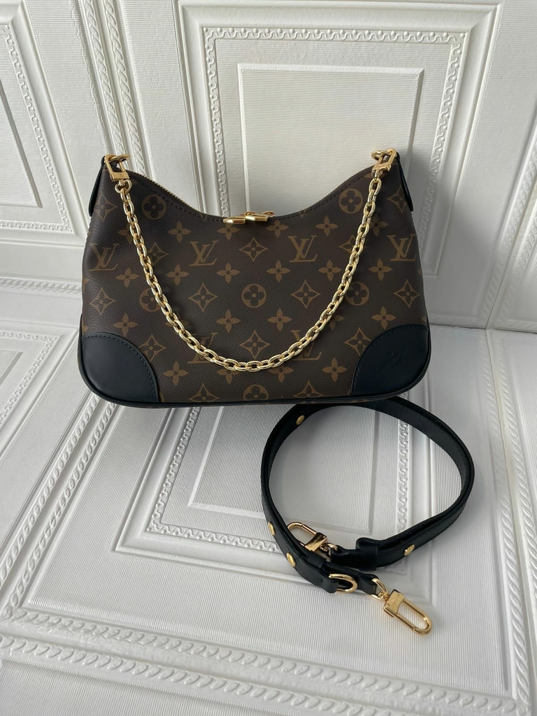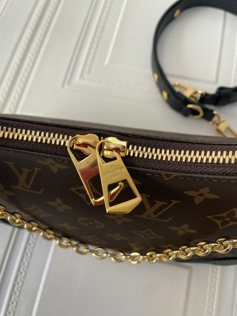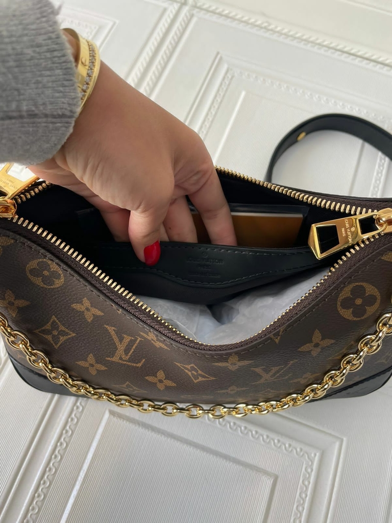 A versátil bolsa Boulogne vem no clássico canvas Monogram e traz uma alça removível e ajustável, permitindo o uso na transversal ou no ombro. Sem a alça, ela se transforma em uma bolsa compacta com corrente ou uma clutch para ocasiões formais. Ela tem abertura com zíper duplo e um bolso interno plano que acomoda um iPhone 12 Pro.