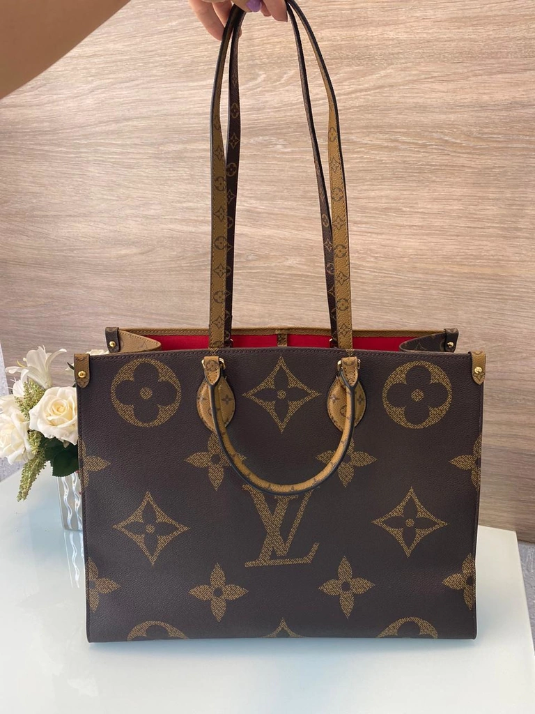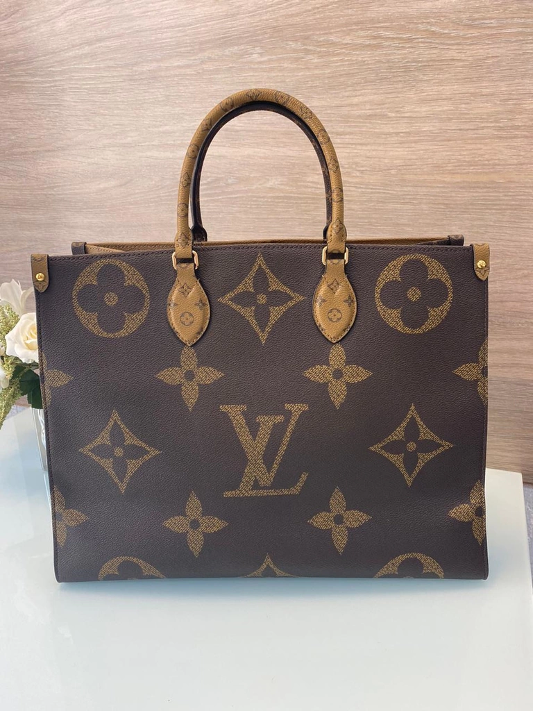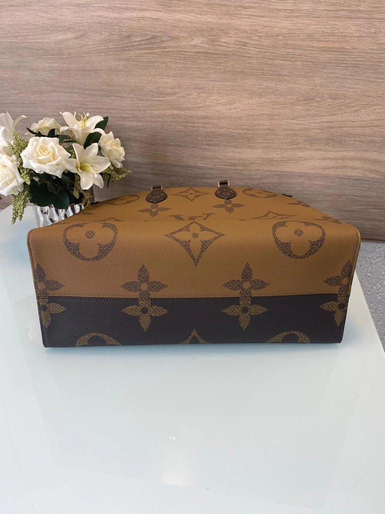 A bolsa Onthego MM vai de uma reunião às compras, com espaço suficiente para todos os itens essenciais do cotidiano. Com o clássico canvas Monogram de um lado e o Monogram Reverse do outro, é praticamente duas bolsas em uma. Alças Toron e alças de ombro oferecem ainda mais versatilidade a esta bolsa.