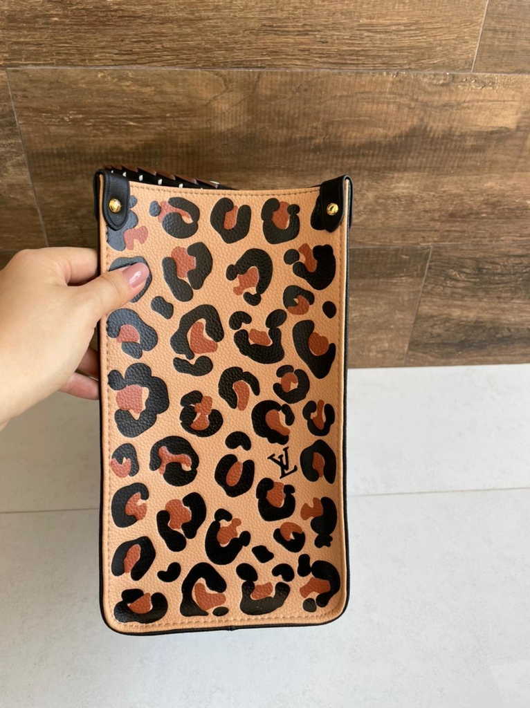 A bolsa tote OnTheGo MM faz parte da coleção-cápsula Wild at Heart da temporada Fall 2021. Confeccionada no couro Monogram Empreinte, com alto-relevo, ela traz um Monogram brilhante, laterais em estampa de leopardo, alças superiores trançadas e alças em couro mais longas, adaptando-se a diversos estilos. Ela acomoda facilmente os itens básicos do dia a dia da mulher.