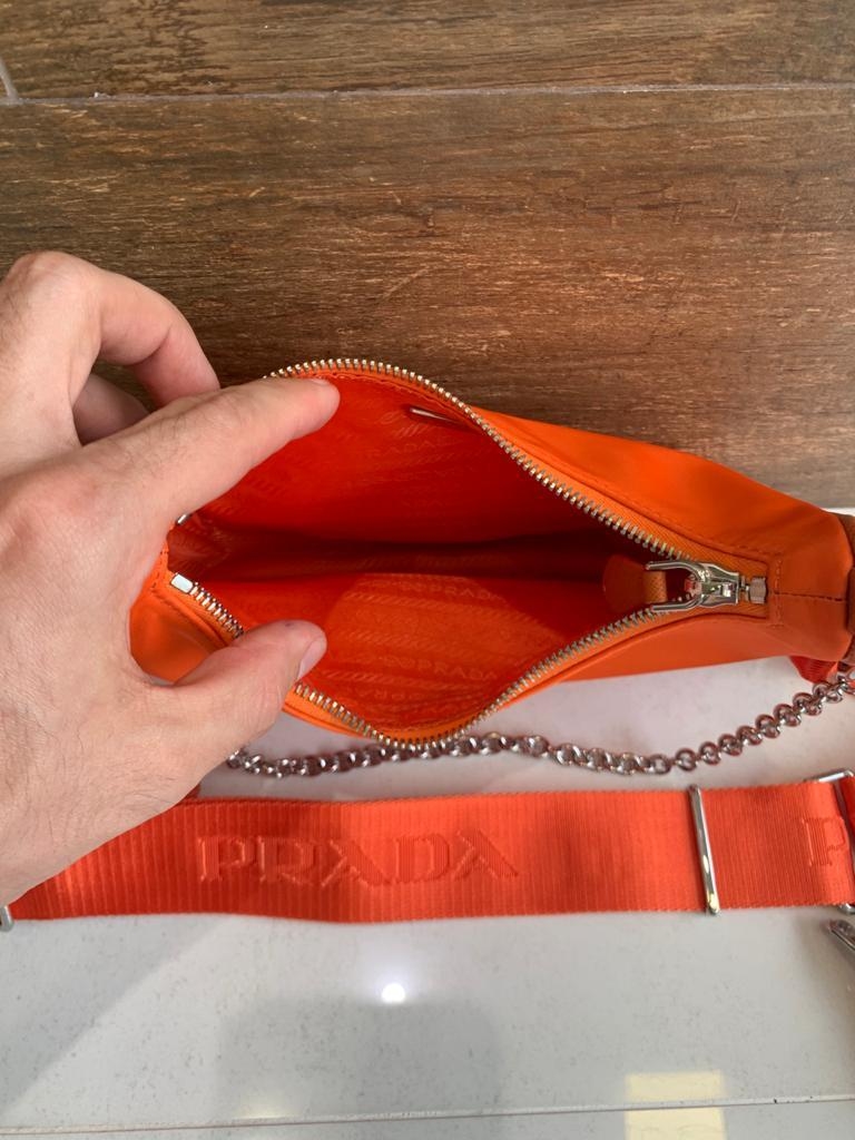 Tag para nome removível em couro Saffiano Prada Re-Edition 2005 com chaveiro