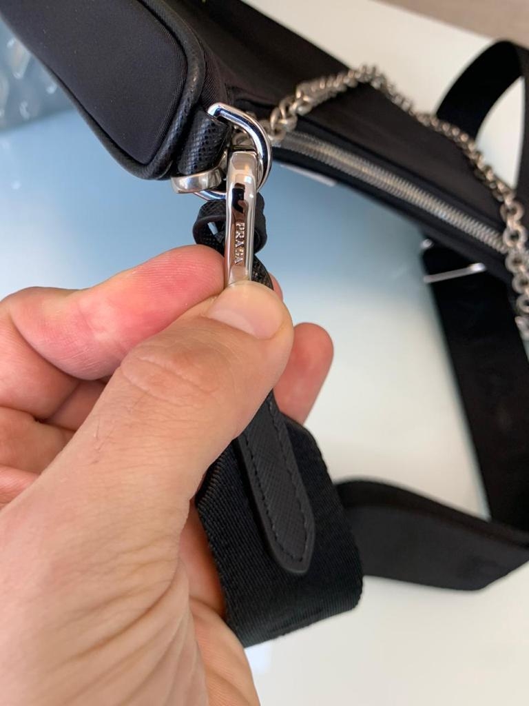 Tag para nome removível em couro Saffiano Prada Re-Edition 2005 com chaveiro