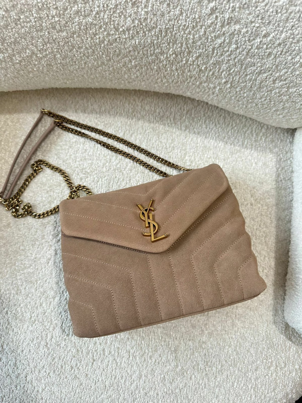 Bolsa Yves Saint Laurent Loulou Pequena - Ferragens Douradas. Esta bolsa tiracolo Loulou em couro caramelo é um clássico e possui fechamento por aba, efeito matelassê, placa de logo na frente, compartimentos internos, alça de ombro em corrente e shape envelope. Medidas: 25 x 22 x 10cm Acompanha número de série, Dust Bag e Authenticity card.