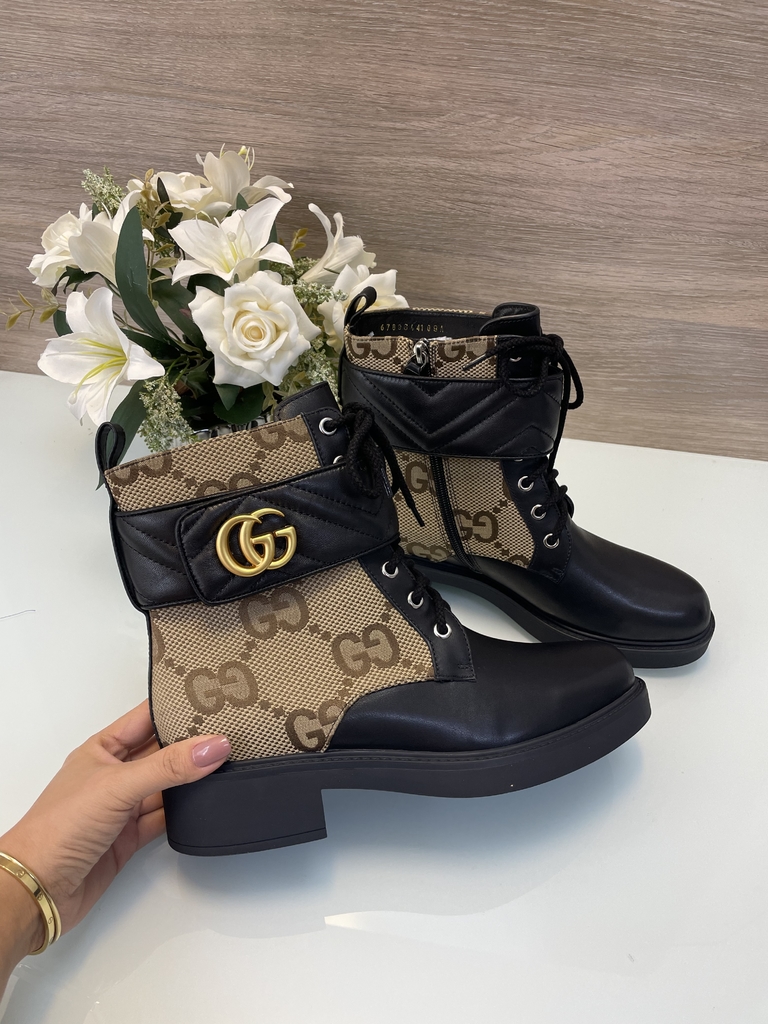 Lona maxi GG bege e ébano com detalhes em couro preto