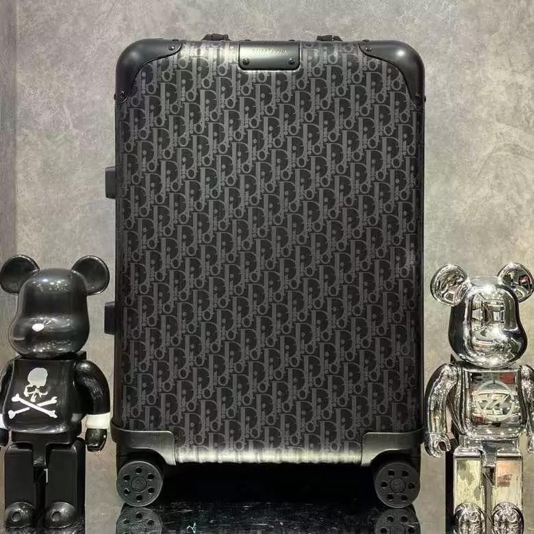 Placa de metal com assinatura ‘DIOR e RIMOWA’