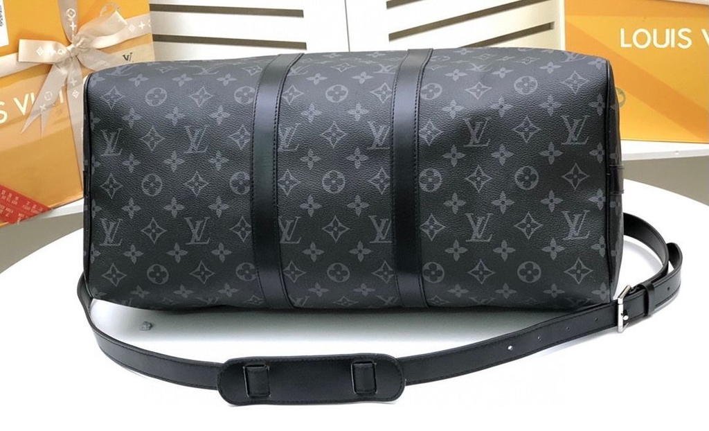 Esta adorada Keepall Bandoulière 50 agora vem em nosso novo e icônico canvas Monogram Eclipse preto e cinza. Leve, maleável e sempre pronta para viajar, a bolsa faz jus ao nome: viajantes experientes em fazer malas podem acomodar facilmente roupas para uma semana, que é generosamente espaçosa, mesmo como bagagem de mão.