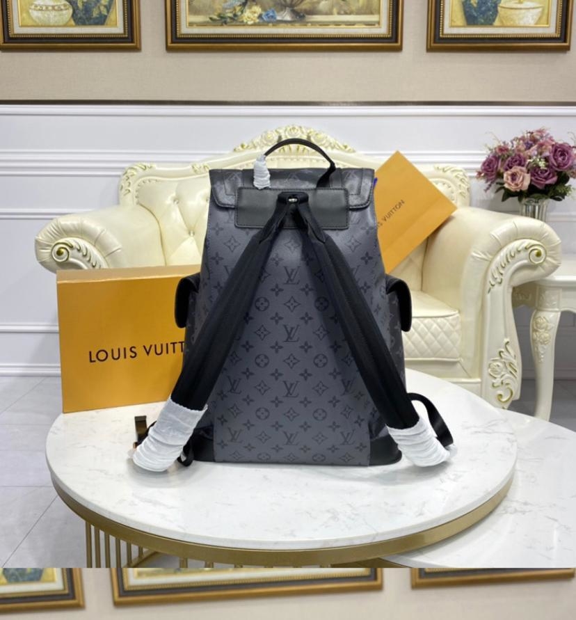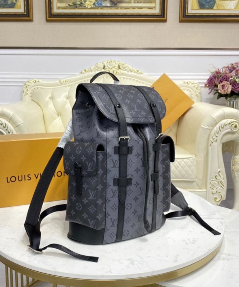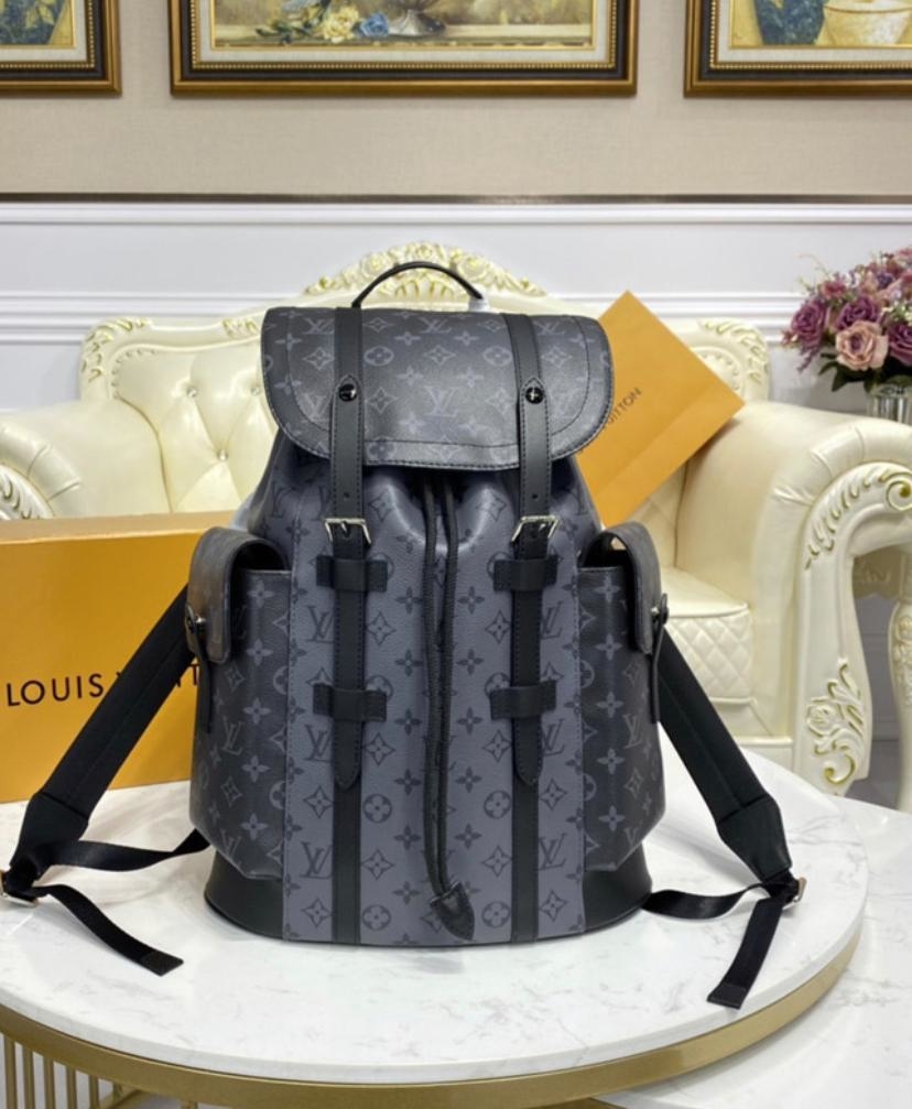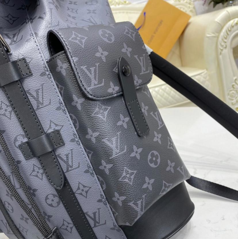 A mochila masculina Christopher PM reinventa o espírito aventureiro com os canvas Monogram Eclipse e Monogram Eclipse Reverse, e tem acabamento em couro preto. Os tons de cinza e preto são realçados pelos detalhes prateados dos zíperes e fivelas. Os diversos bolsos e uma aba de couro com botão de pressão ajudam a manter tudo em segurança.