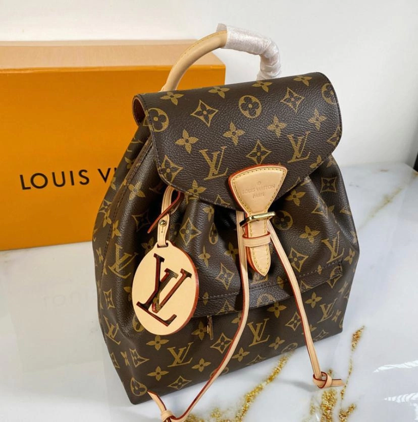A mochila Montsouris PM é confeccionada em canvas Monogram e couro, com uma fivela clássica Louis Vuitton e cordões de couro, ela traz um bolso externo com zíper. A alça superior e as alças de couro ajustáveis .