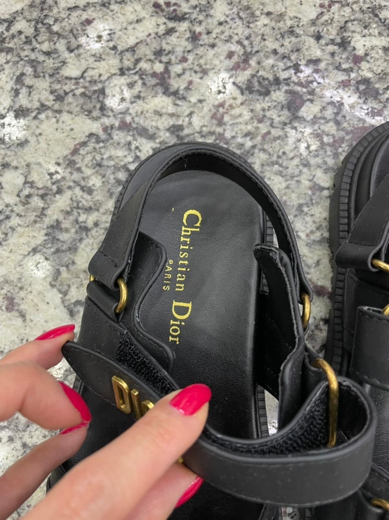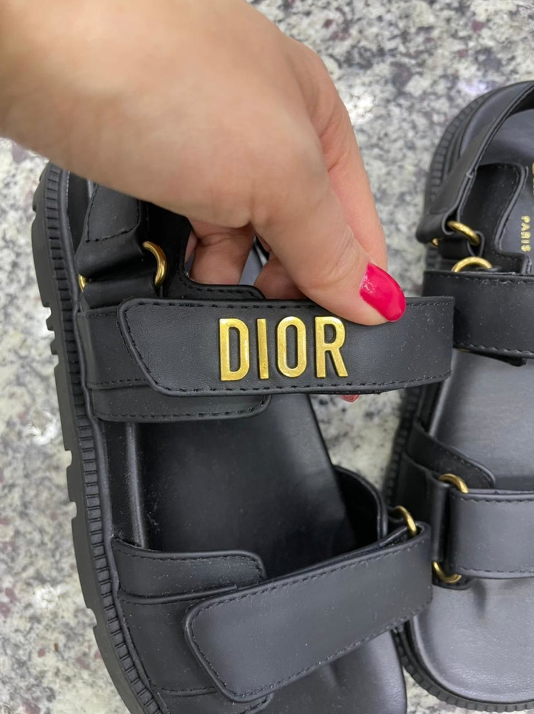Esta sandália DiorAct preta tem uma silhueta moderna. O modelo exibe uma sola com formato anatômico feita em couro ultraleve e confortável. Faixas aderentes valorizadas por uma inscrição “Dior” de metal com acabamento dourado na faixa superior finalizam o calçado que agrega um toque contemporâneo a qualquer look.