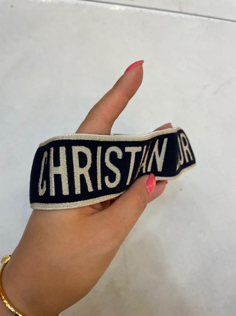 Faixa com elastano em jacquard azul-marinho e inscrição “CHRISTIAN DIOR” branca