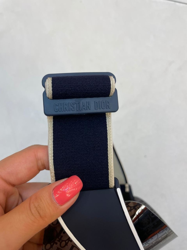 Estrutura azul-marinho fosca com inscrição “CHRISTIAN DIOR PARIS” branca