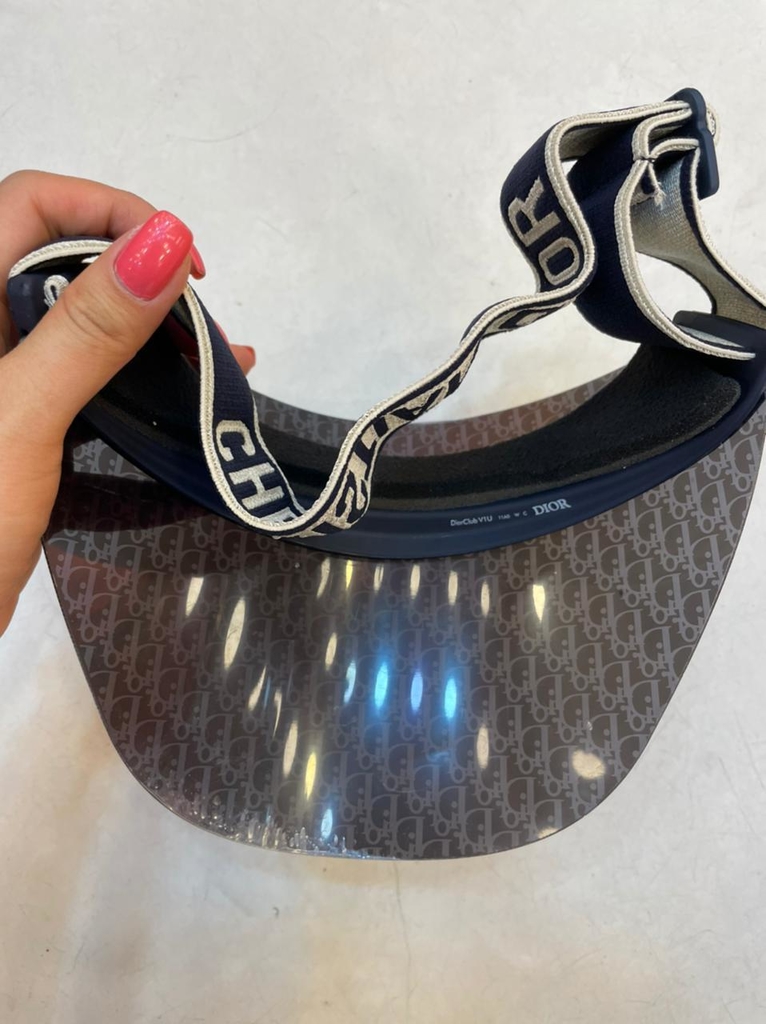 Viseira azul com motivo Dior Oblique prateado espelhado